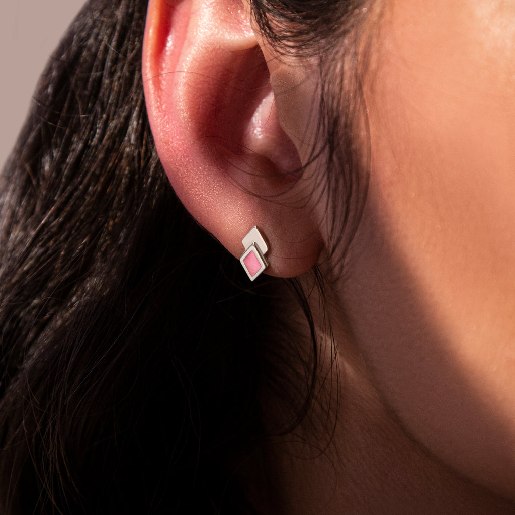 As a piece of history, interpreted with a modern and playful take, The Mosaic Earrings are a tribute to the timeless beauty of Arab mosaic tiles, where rhombus patterns have adorned palaces and courtyards for centuries.
