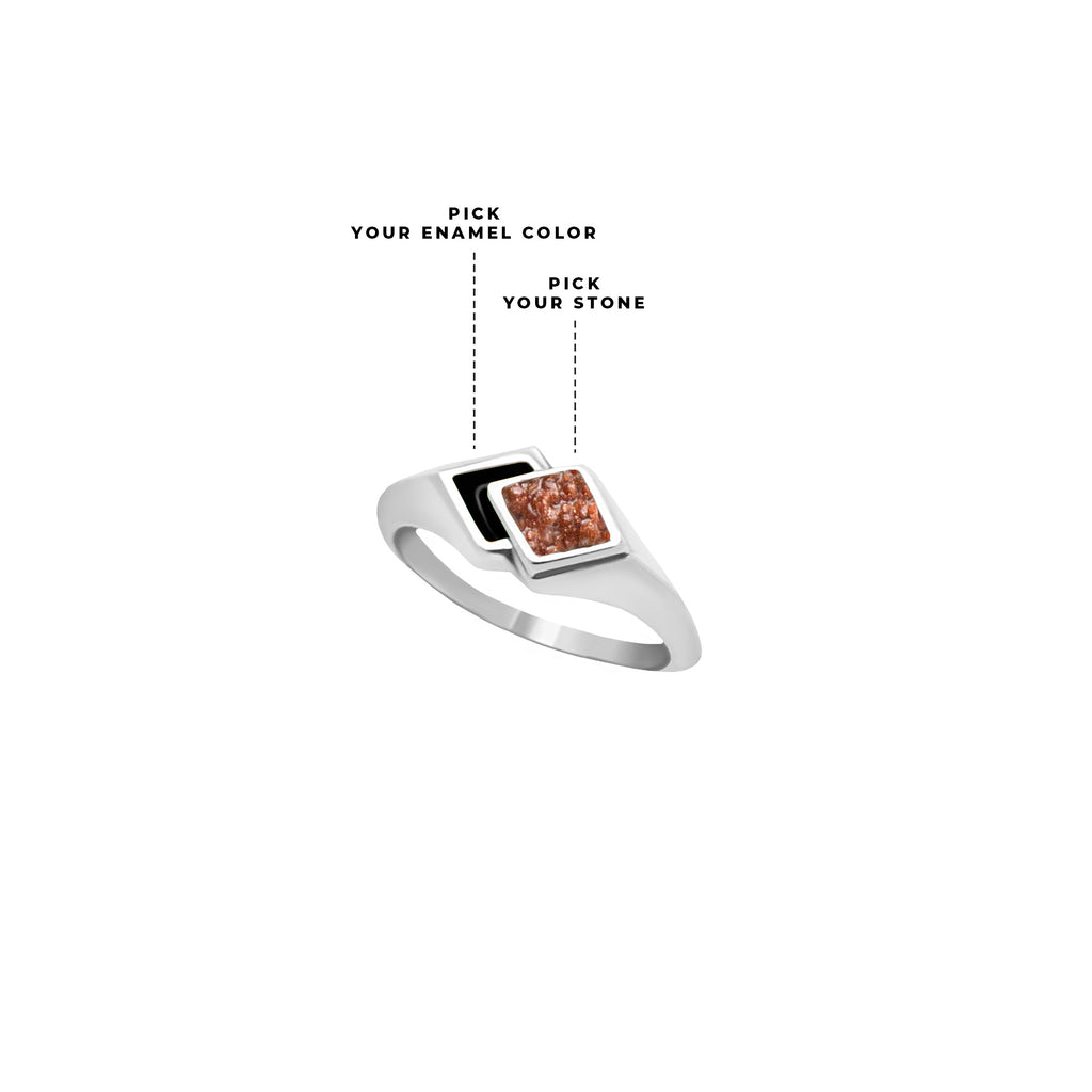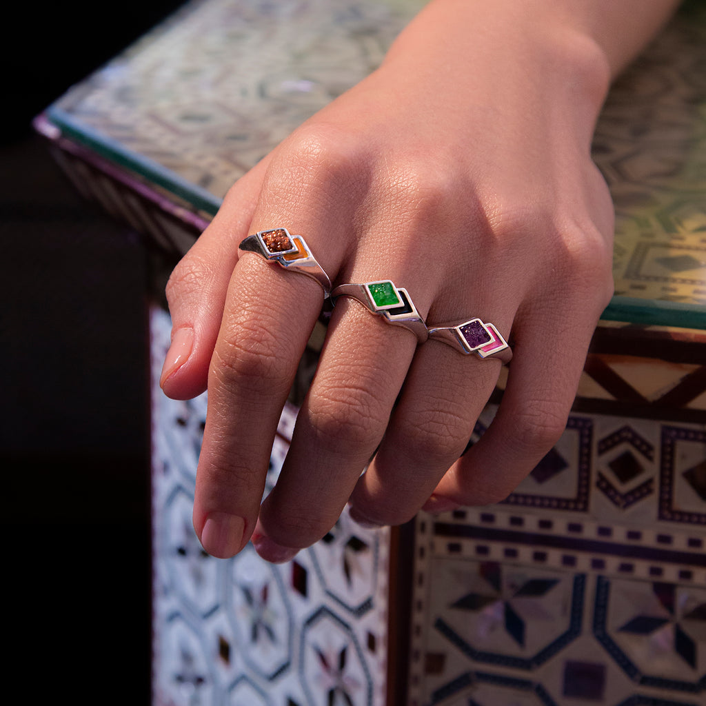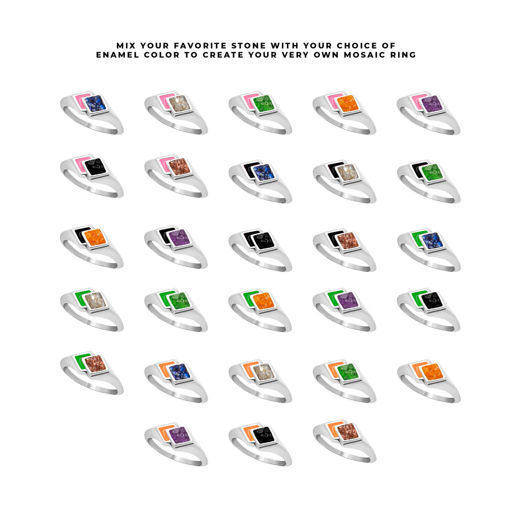 Crafted from sterling silver, natural stones and enamelling, this ring offers a canvas for your personal expression. Choose from a curated selection of natural stones and enamel colors to create a combination that speaks to your individual style. Whether you opt for vibrant contrasts or harmonious tones, the Mosaic Ring offers endless possibilities, allowing you to wear a piece of history with a modern and playful take.