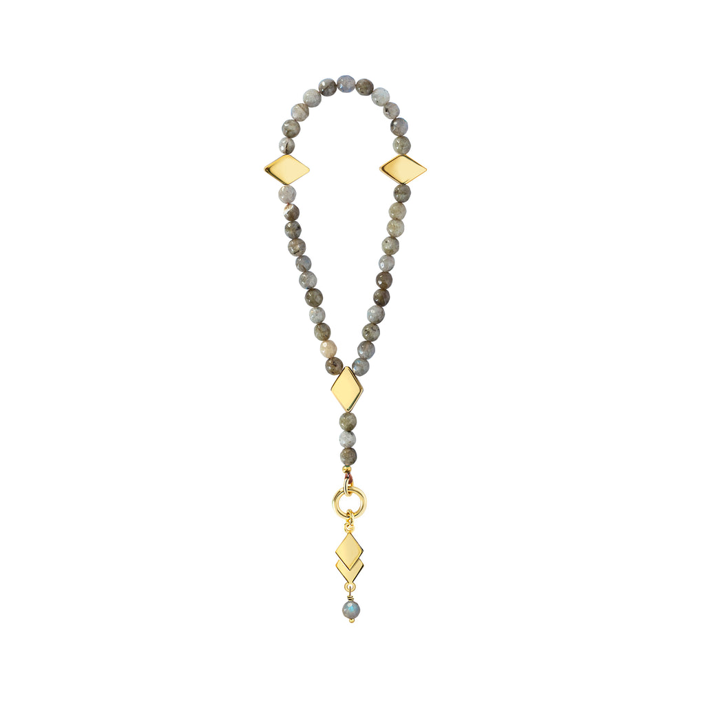 Prayer Beads Material: 18kt Gold Plated Brass, and Natural Grey Labradorite Stones