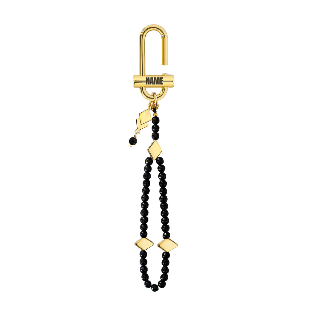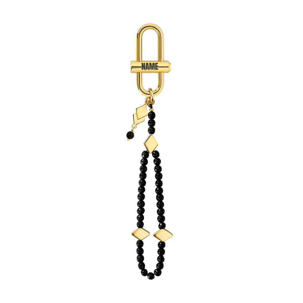 Personalized in your name, initials, or a word that grounds you, TAQWA is crafted from black onyx stones with blue hues, carrying